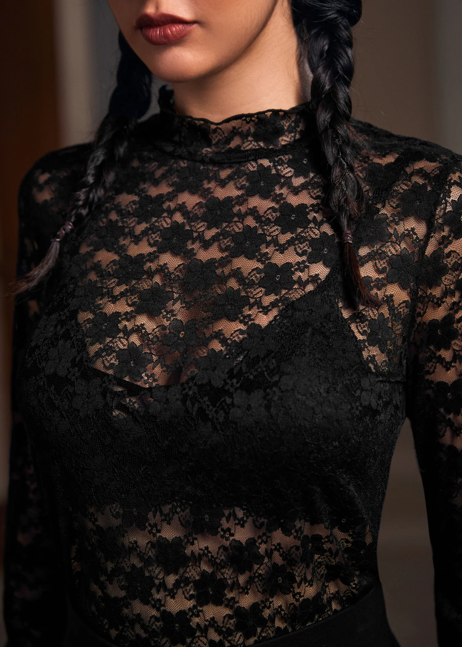 Timeless Twilight Era Long Sleeve Top from our ModCloth namesake label wraps you in elegance and comfort as the temperature dips. This mock neck top, fashioned from luxurious lace and featuring high stretchability, hugs your figure in the most flattering way. The all-over black knit embodies the mysterious allure of autumn nights. Perfect for both office elegance or a nighttime rendezvous, it’s a versatile piece that brings a touch of whimsy to your fall wardrobe.
